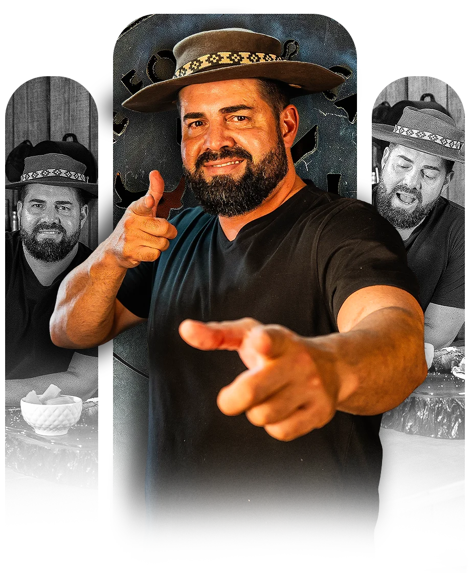 Ele acredita que todo homem pode dominar o churrasco, desde que tenha orientação prática, sem frescura, com técnica de verdade.